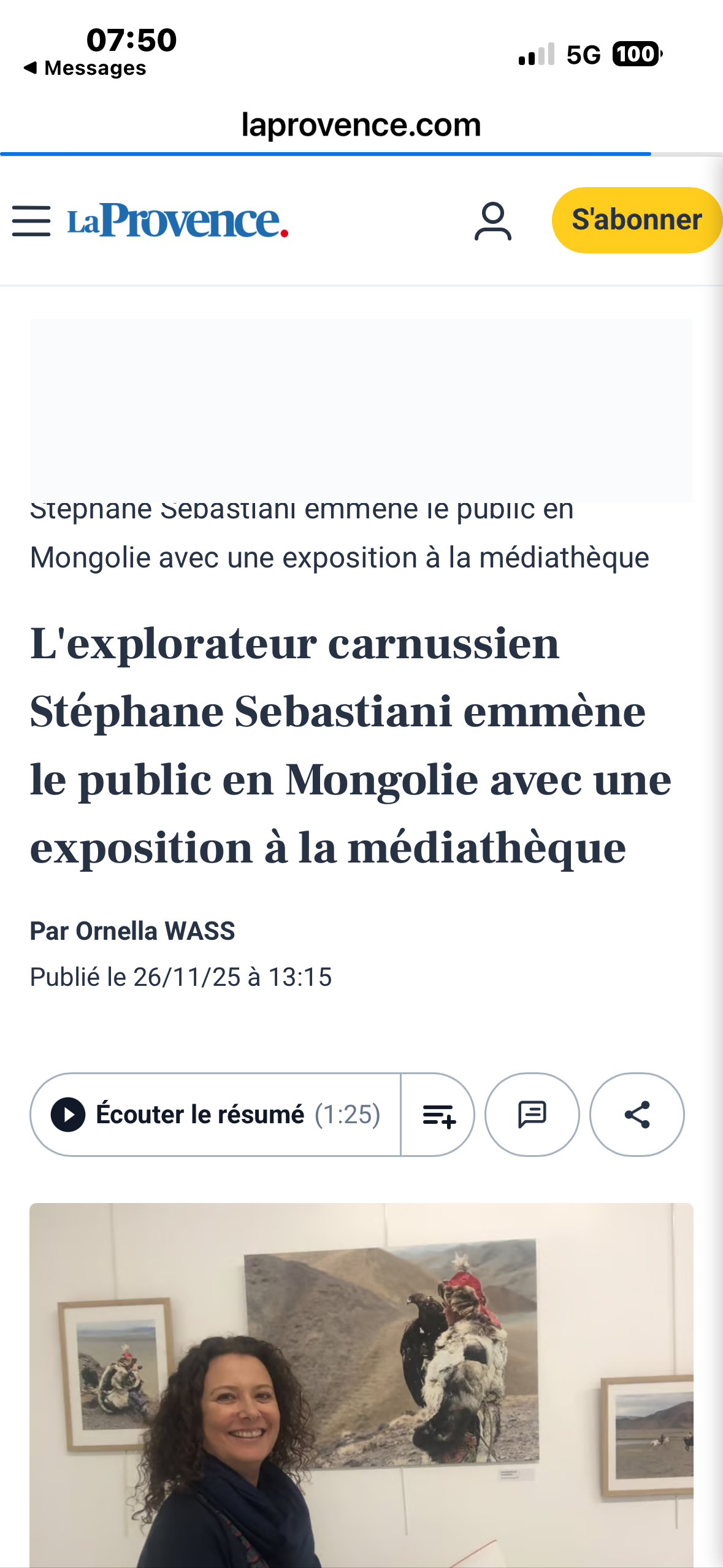 Conférence réalisée à la Médiathèque de Carnoux-en-Provence le 29 novembre 2025. Exposition photo sur la Mongolie du 18 Novembre au 5 décembre 2025. Article la Provence Ornella WASS.
